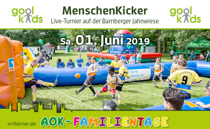 Wer hat insgeheim schon mal davon geträumt in einem überdimensionalen Kicker selbst das Spiel mitzugestalten? Bei unserem MenschenKicker (Human-Soccer-Court) habt Ihr am Samstag, 01.06., Spielbeginn um 11 Uhr die Gelegenheit dazu: