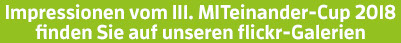 Der MITeinander-Cup 2018 hat zum wiederholten Mal eindrucksvoll gezeigt, dass Sport Jugendliche aller Nationen und Gruppen sogar ganz ohne Barrieren zu einander führen kann. Alle Spieler, Organisatoren und Helfer freuen sich schon riesig auf das nächste Jahr, wenn wir wieder zum Fußballfest aufrufen.