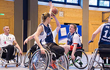 Für den absoluten sportlichen Höhepunkt sorgte das Einlagespiel: Rollstuhlbasketball der POLDIS gegen eine Auswahl aus Prominenten und Betreuern. Viele durften sich zum ersten Mal im Sinne der Inklusion in einen Rollstuhl setzen. Vergeblich versuchten sie am Anfang auch nur 1 Korb zu treffen. MdB Schwarz war begeistert, den Sport aus einer ganz neuen Perspektive zu erleben. Für den Förderkreis goolkids ist dieses Turnier der Einstieg in das neue Projekt „Sport-Inklusion in Bamberg“. Hierbei werden in Zukunft in Kooperation mit der Lebenshilfe verstärkt neue Sportangebote für Sportler mit und ohne Behinderung ins Leben gerufen. „Wir wollen diese Menschen zurück in eine offene Sportgesellschaft rücken.“ so der Initiator Bartsch.