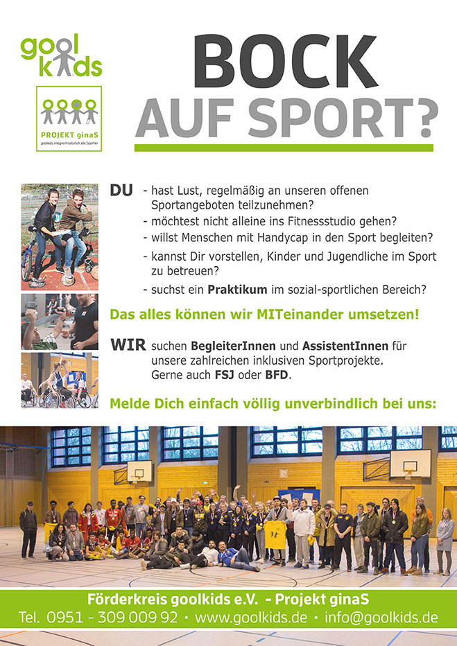 So lauten zwei unserer Kernthemen, die wir mit Begeisterung und gemeinsam mit ehrenamtlichem Nachwuchs als goolkids-Sport-team anpacken. Um den erweiterten Anforderungen gerecht werden zu können, suchen wir viele weitere neugierige und kreative Teamplayer!